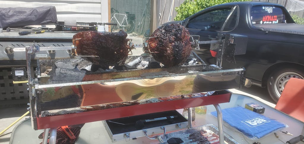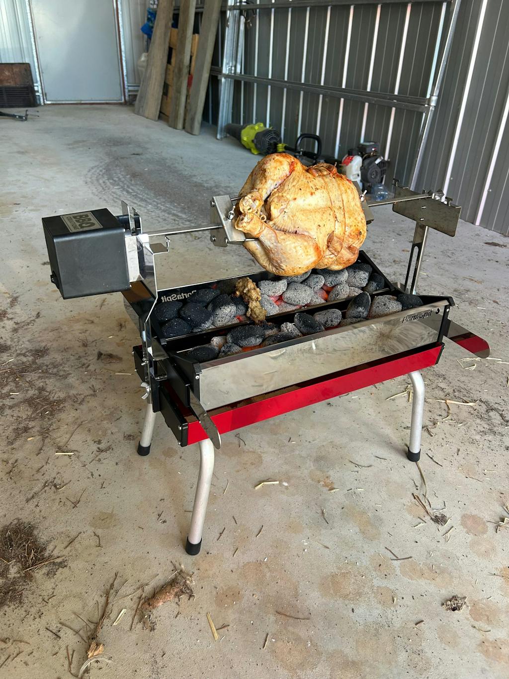 We took the Portable Spit camping for the first time and was amazing at how wonderful it was. The roast and Chickens turned out amazing and the smell was incredible.