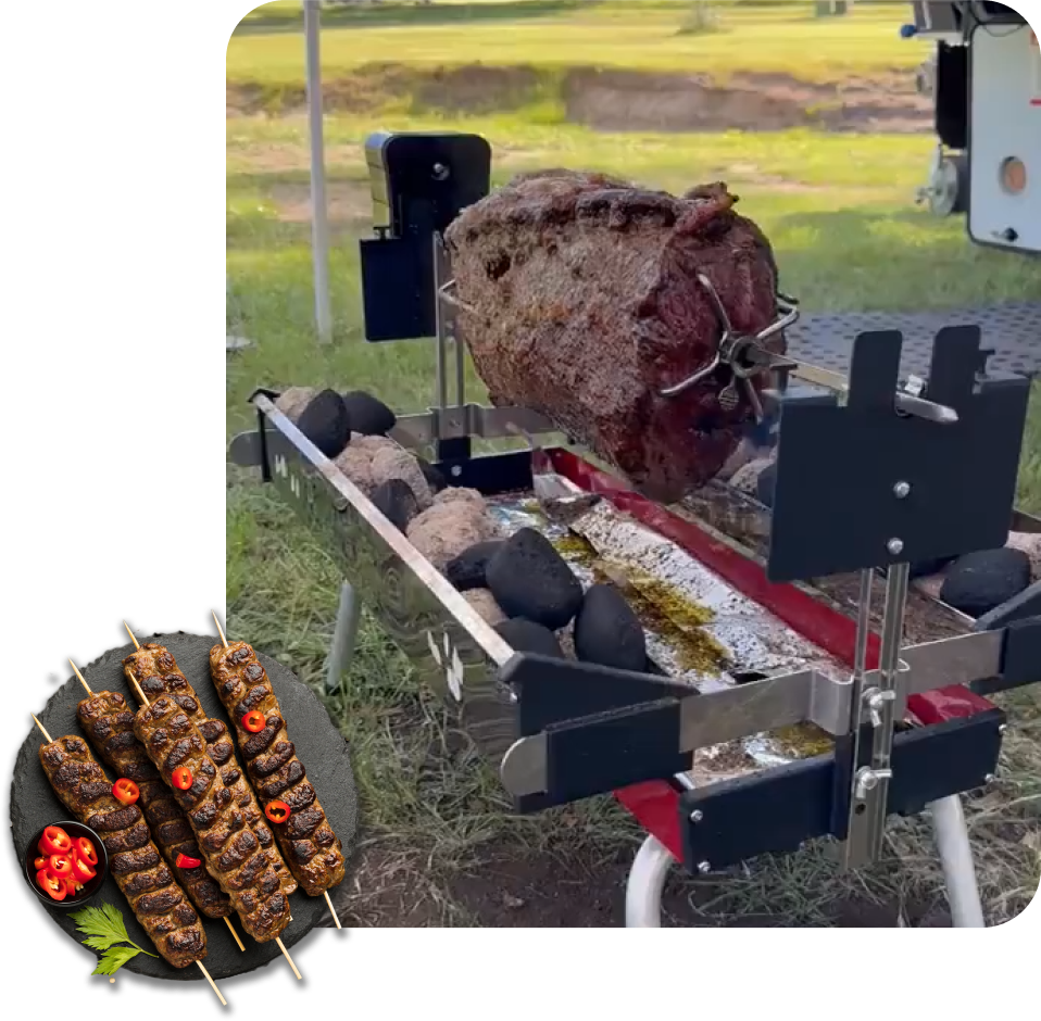 Our clever designs clean and fold away fast to fit in your boot or the back of the ute like a glove. Unlike other spit-roasting brands, our units aren’t the size of a beer keg either, so you can even set up a charcoal roast that’ll blow your mind - on the go.
